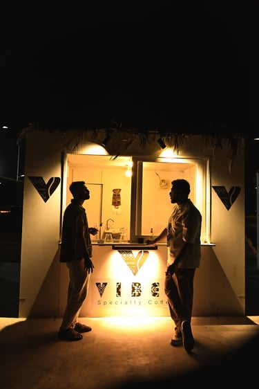 فايبز هو مشروعي الخاص، مساحة أقدّم فيها القهوة كحرفة، وثقافة، وتجربة متكاملة. في فايبز أعلّم القهوة من أصلها، من المزرعة لطرق المعالجة والتحميص إلى أن تصل الكاسة بكل وضوحها وتفاصيلها.