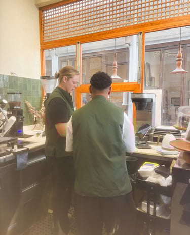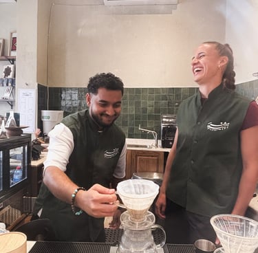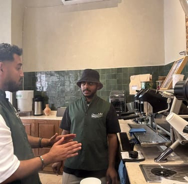 في قهوة مشربية كأوبريشن تشغيل لكن قصتي مع القهوة أعمق من إدارة يومية أو وصفة محفوظة أنا حرفي قهوة مختصة أؤمن إن القهوة تجربة تُبنى من التفاصيل من الحبة للتحميص للطحن للتحضير وحتى لحظة تقديم الكوب. دوري في مشربية هو بناء التشغيل الصح وتدريب الهوم بارستا والبارستا المبتدئين على فهم القهوة قبل تحضيرها وعلى الإحساس بالمذاق قبل حفظ الوصفة. أشتغل على صناعة منيوهات جديدة تحترم القهوة المختصة من مشروبات محلية بروح حديثة إلى وصفات تناسب ذائقة السياح وتحكي قصة مشربية بالنسبة لي مو مجرد مقهى هي مساحة تعليم تجربة وهوية قهوة